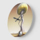 Horloge à thème de champignons inspirée de Dali pour les amateurs de champignons ! Arrière - plan beige boule d'argent futuriste.