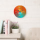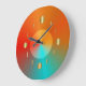 Un design d'horloge très décoratif avec un fond à effet lumineux Aqua rouge/orange. Les chiffres sont représentés par des cercles de couleur or. Un design d'atmosphère inspiré du Moyen-Orient ou de l'Europe. Un cadeau d'occasion pour toute personne ou pour ajouter un peu de pep à une pièce spéciale de votre maison ! Jilly