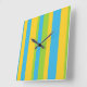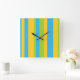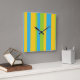 Une horloge murale chic et carré, avec une motif rayée audacieuse en bleu turquoise, vert feuille et jaune or. Une partie de la collection Posh & Painterly 'Daisy Chain'.