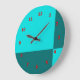 L'horloge murale ronde affiche un design bleu-vert d'été. La conception de carreaux est disponible pour tous les produits Zazzle. S'il n'est pas encore disponible ou si vous avez une demande d'information sur la façon de customiser un produit d'impression à la demande, veuillez utiliser le bouton de contact ci-dessous.