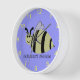 Mon design original d'art graphique peint à la main. Une petite abeille à bourdons souriante avec des ailes qui battent est représentée sur un fond violet clair avec des chiffres jaunes. PERSONNALISEZ avec le NOM de votre enfant (insérez à la place de mon exemple de texte). Ferait une belle horloge murale gaie pour la chambre d'un enfant. Visitez ma boutique pour voir plus d'articles originaux (incluez ce lien complet) : www.zazzle.com/tamirazdesigns*