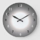 Un design d'horloge dramatique avec un centre lumineux arrondi de gris argenté. Des chiffres blancs et noirs et des aiguilles d'horloge en noir complètent ce design atmosphérique. Changez facilement de carré à rond ou ajoutez un cadre.