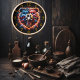 Un ours majestueux portant fièrement le drapeau américain comme pièce maîtresse, symbolisant la force, la liberté et le patriotisme. Avec des numéros d'horloge or