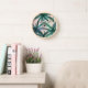 Cette jolie horloge à l'allure Art déco un peu rétro de Miami présente de nombreux palmiers dans les tons bleu vert sur un arrière - plan de corail rose pastel pâle.