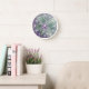 Horloge Rêve de fleurs, Abstrait violet vert Fractal Art