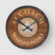 #1 Entraîneur Rustique Brown Wood Star, Brun Woodgrain Horloge murale. Une incrustation de bois rustique Faux fait le cadeau parfait personnalisé, n'importe quel entraîneur adorerait cela. Notre modèle convivial facilite la personnalisation.