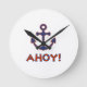 Horloge Ronde AHOY ! Bouée + Design Ancre Rouge+Bleu