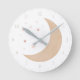 Horloge Ronde Aquarelle rose or Lune et étoiles