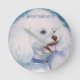 HORLOGE RONDE BICHON BLANC FRISE
