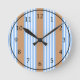 Horloge Ronde Bleu et blanc cinq bandes motif avec bronze