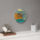Horloge Ronde Blue Ocean Waves Nautilus Seashell Motif Nouveau