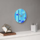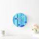 Horloge Ronde blue strips clouds dots