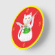 Cette impressionnante horloge murale présente une image graphique d'un chat oriental blanc qui a de la chance. Le chat a de beaux yeux dorés et porte un médaillon d'or sur le collier autour du cou. Le chat a des oreilles roses et des chuchotements. Ce mignon petit chaton tient un jeton doré avec une incrustation de jade verte et un message en texte doré qui dit "Bonne chance".