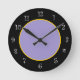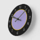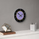 Trendy and stylish kitchen wall clocks in purple yellow and black with classy face number markings that add a touch of class to the design.