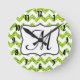 Parties scintillant moderne vert chaux Chevron Zig Zag Tissu de bande Imprimer Motif Monogramme initial Horloge murale Personnalisée