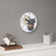 Derrière le beau portrait aquarelle d'un chien Rottweiler sur cette horloge se trouve un joli bouquet de rose blanc. Le bouquet et l'image du chien sont ornés d'un tourbillon de faux confettis de parties scintillant. Les chiffres en or foncé et les marqueurs en forme de diamant autour du périmètre rendent l'horloge facile à lire. Parfait pour tous ceux qui ont perdu le coeur à un Rottie.