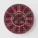 Horloges murales fermières avec chiffres romains blancs sur buffle rouge plaid motif pour la décoration festive de Noël.Personnalisez avec nom de famille et établi année pour une horloge de vacances unique.