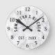 Classy Personalized White Marble Kitchen Clock to add a luxury look to your kitchen décor. Personalize with name and established year.