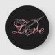 Horloge Ronde Coeur tendance Grey Calligraphie Amour Mariage