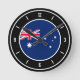 Drapeau australien Horloge élégante ronde avec le drapeau australien positionné au milieu et de beaux chiffres de montre blancs sur le bord de l'horloge. Un beau fond noir avec des éléments ovales blancs finalise le design en mettant l'accent sur l'élégance. Une belle combinaison de noir et de blanc avec l'intégration habile des couleurs du drapeau national fait de cette horloge le cadeau parfait et la belle pièce à exposer sur le mur. © 2022 CountriesOfTheWorld