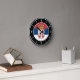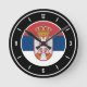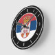 Horloge ronde élégante avec le drapeau de la Serbie positionné au milieu et de beaux chiffres de montre blancs sur le bord de l'horloge. Un fond noir charmant avec des éléments ovales blancs finalise le design en mettant l'accent sur l'élégance. Une belle combinaison de noir et de blanc avec l'intégration habile des couleurs du drapeau national fait de cette horloge le cadeau parfait et la grande pièce à exposer sur le mur. © 2022 CountriesOfTheWorld