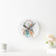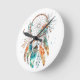 Horloge Ronde Dreamcatcher en aquarelle en plumes turquoises