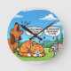 Horloge Ronde Drôle Cartoon Chien, Chat et souris