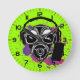 Customizable magnéta rose dubstep DJ or graffiti artist gasmask with headphones and sunglases.