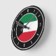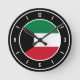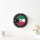 Kowait Flag Elegant Round Clock with the Kowait flag posied in the middle and lovely white clock numbers on the clock edge. Delightful black background with the white oval element finalize the design putting emphasis on the elegance. Beautiful combination of black and white with the skillful integration of the national flag colors make this clock the perfect gift and the great show piece on the wall. © 2022 CountriesOfTheWorld