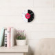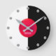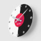 Élégantes touches de gris argenté royal sur une horloge murale noire et blanche. Le texte peut être personnalisé. Cette horloge est un merveilleux cadeau !