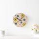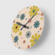 Horloge Ronde Flower Power Retro 60s Pattern Mustard Blue Orange