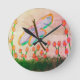Horloge Ronde Funky Dragonfly Abstrait Art