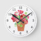 Horloge Ronde Geraniums rouge et rose en pot floral