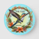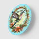 Horloge murale artistique représentant un tableau d'un colibri sur une couronne fleurie. Magnifique comme cadeau pour grand-mère ou pour quiconque aime les colibris.