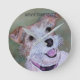 A sweet smiling Jack Russell Terrier showing a pink tongue and collar - Furry brown and white with bright brown eyes and a black nose - originally painted by the designer www.fancifulwatercolors.ca - contact me if you want your dog painted!