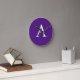 Horloge Ronde Lettre initiale Monogramme Style moderne violet