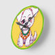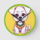 Illustration charmante d'un mignon chiot de dessin animé, assis sur un arrière - plan circulaire vibrant. Parfait pour les illustrations pour enfants, les thèmes pour les animaux de compagnie et les dessins joyeux.