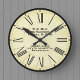 Une horloge murale pour un pub, un bar, une maison publique, un bar à cocktails ou un bar à vin. L'horloge a le nom de l'entreprise et aussi l'adresse. De beaux chiffres de style romain et un arrière - plan de style parchemin.