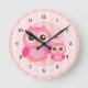 Caricature mignonne de la chouette de maman rose avec son horloge de bébé hibou avec des chiffres faciles à lire. Un design adorable, girly et doux pour décorer les chambres pour bébés filles et filles. Merveilleux comme pièce centrale pour les murs.