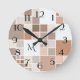 Une horloge murale moderne avec un motif en carrelage à damiers dans les tons bronze, beige, café et terre brun sable. Les numéros sont un fichier séparé et peuvent être supprimés si vous n'en avez pas besoin. Et vous pouvez également customiser ou supprimer le texte monogramme.