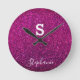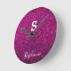 Horloge Ronde Monogramme Initiale Nom Violet Rose Pailleté Moder