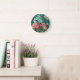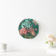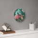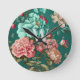Horloge Ronde Monogramme romantique classique Turquoise et rose