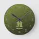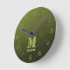 Horloge Ronde Motif de maillage géométrique d'olive verte de l'a