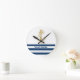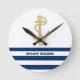 Horloge Ronde Nautique, Ancre d'or Bleu Bleu Bleu Blancs