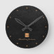 Horloge murale de luxe monogrammed arrondi avec un arrière - plan en cuir noir et un carré en cuivre métallisé faux or brossé avec un nom de signature de script élégant et des initiales monogramme. ++++++++++++++++++++ Facile à personnaliser avec vos initiales et votre nom professionnels ou personnels. ++++++++++++++++++ Peut être un cadeau personnalisé élégant pour les affaires ou toute autre occasion, décoration personnelle ou de bureau.