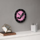 Pour les amateurs de mode, cette horloge de style rétro est imprimée d'une chaussure à talon élevé dans un décor rose et noir.