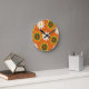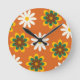 Horloge Ronde Orange Retro les années 70 Fleurs