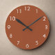 Un arrière - plan orange brûlé, couleur terre cuite. Numéros de l'horloge blanche.