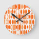 Cette horloge au design art déco fait d'ovales et de demi-ovales en blanc et dans les tons orangés.