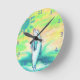 Adorable wall clocks tories a paint-like design of a dolphin jumping out of the water. These cute beach themed clocks would be perfect in your nautical themed home or beachside business .
